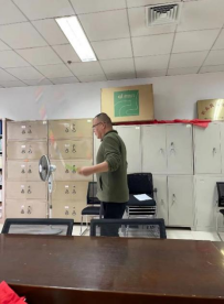 类似趣味运动会的小项目,虽然规模不大,但想以最快的速度吹过六个装满水的纸杯,也不是件容易的事。锻炼了老师们的肺活量和呼吸的控制。
