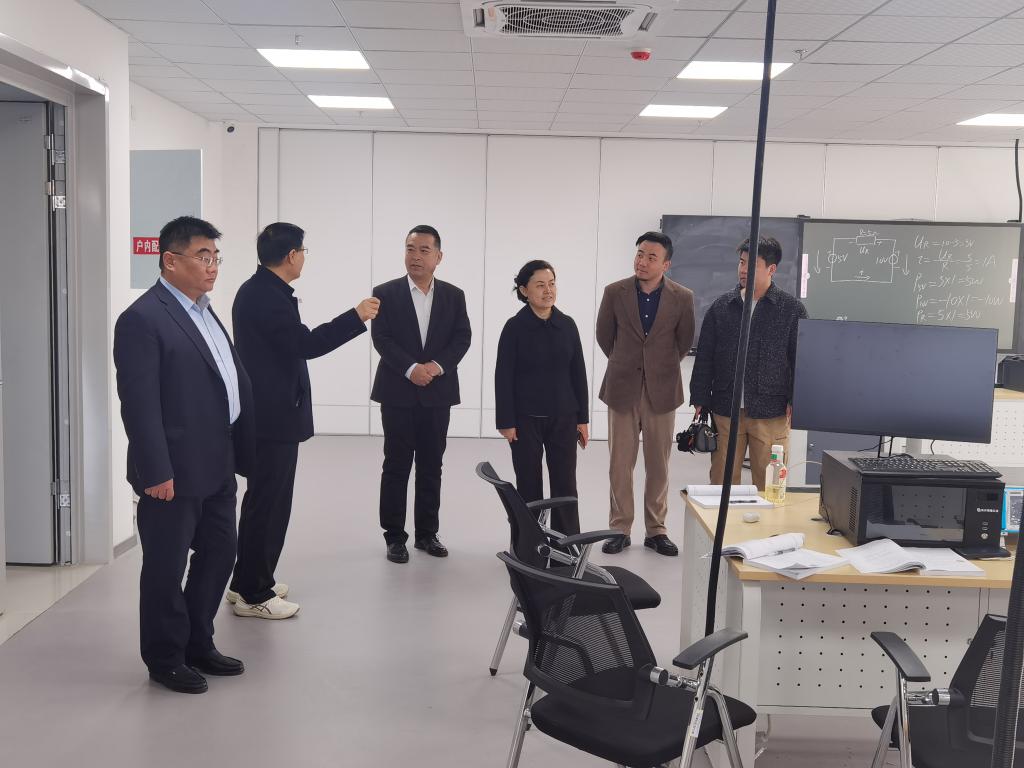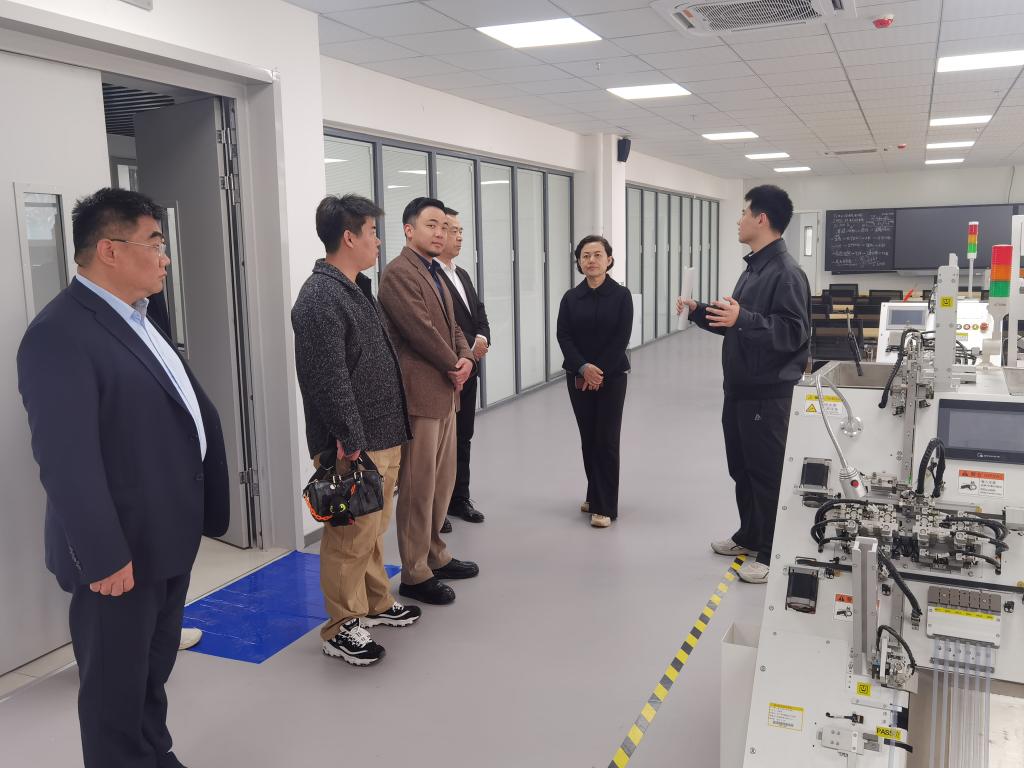 调研期间,在张苹等陪同下,张鹏飞一行先后参观了学校沙盘、智能制造学院实训室、市公共实训中心的绿色化工实训平台、现代智能制造实训平台、现代工业机器人实训平台以及集成电路实训室等场所,实地了解我校实训基地建设和产教融合开展情况。