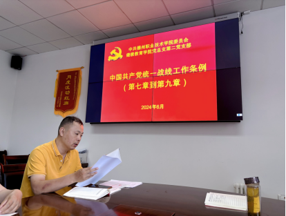 根据学校党委组织部《关于开展6月份主题党日的通知》要求及365英国官网登录入口党总支第二党支部党建工作计划,我支部于2024年6月19日在润德楼318会议室开展主题党日活动。参会人员应到 11 人,实到9人。(会议由党支部书记刘庆同志主持)。