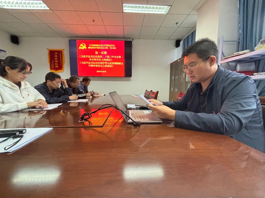 根据学校党委组织部《关于开展10月份主题党日的通知》要求及365英国官网登录入口第二党支部党建工作计划,我支部于2024年9月13日在润德楼307会议室开展主题党日活动。参会人员应到11人,实到10人,1人因事请假。会议由党支部书记刘庆同志主持。