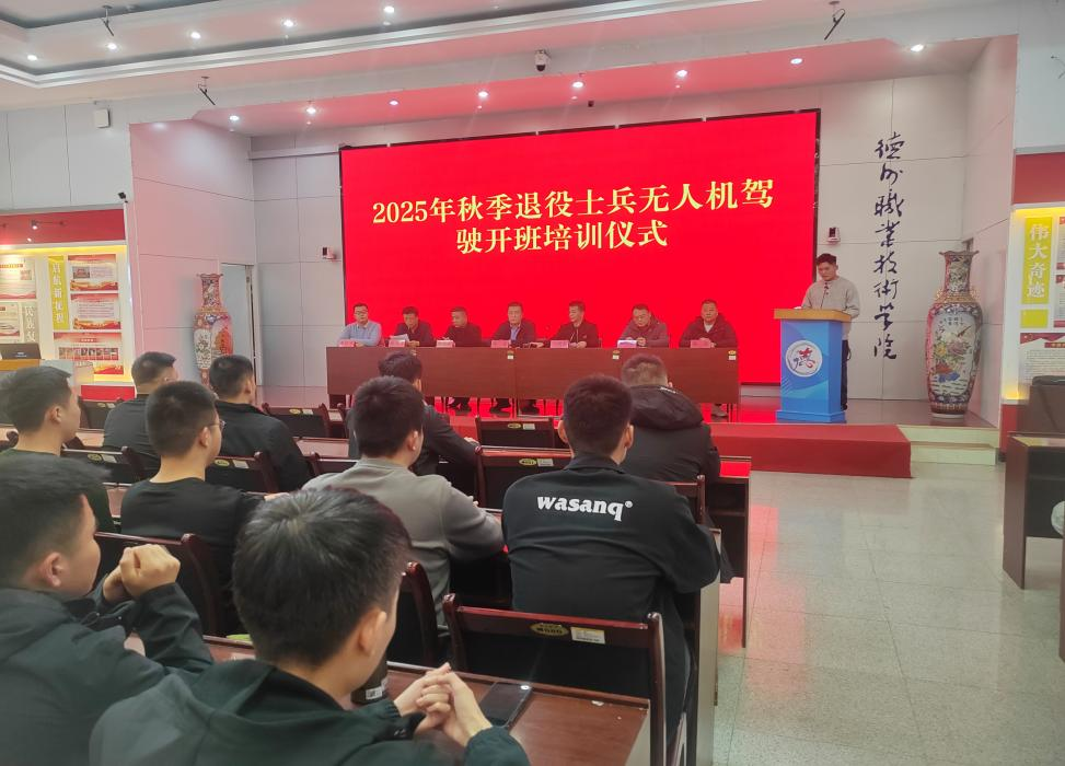 为深入贯彻落实国家关于退役军人就业创业工作的部署要求,进一步提升退役士兵职业技能与就业竞争力,德州职业技术学院集成电路学院于2025年10月27日顺利举办“2025年秋季退役士兵无人机驾驶培训”开班仪式。本期培训班共有36名来自德州市各县(市区)的退役士兵报名参加。